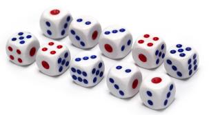 骰子是⼀个正六面体(立方体),每一面上有圆点表示的数字(圆点的数量表⽰数字的大小)。⼀个普通的骰子的六个面上分别有 1-6 这 6 个不同的数字:
